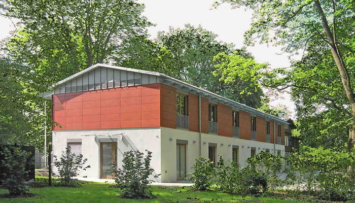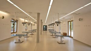Um- und Anbau eines denkmalgeschützten Wohnhauses zu einem Fortbildungsgebäude für niedergelassene Tierärzte mit Seminarbereich im Obergeschoss und einem OP-Übungsbereich im Erdgeschoss.