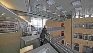 4-geschossiger Verbindungs- bzw. Lesehalle. Kellergechoss mit Archiv und Gebäudetechnik.