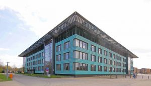 Erster Baustein am zentralen Platz des neuen Campusgeländes.